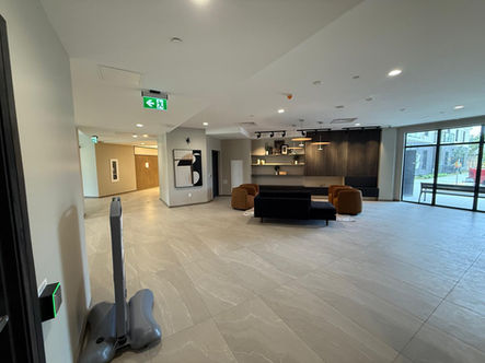 In these pictures you're seeing the ground floor and biggest unit of this building it was professional and big project with 6 floor and 120+ unit we did 3 coat paint for wall and 2 coat ceiling paint without deficiency with 6 different paint color hard cutting work especially with black paint but our team did amazing job like all other times as well and we finished this project in 6month with stairs, railings, units, ground floor and gym of the building also we did epoxy of the stairs ground as well.